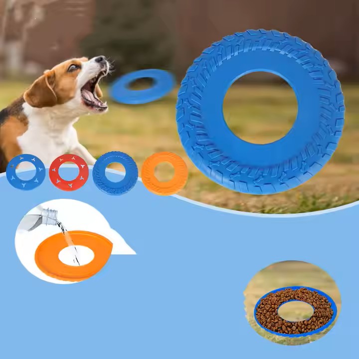 Outdoor Blue Dog Rubber Tire Flyer Dog Frisbee Fetch Toy