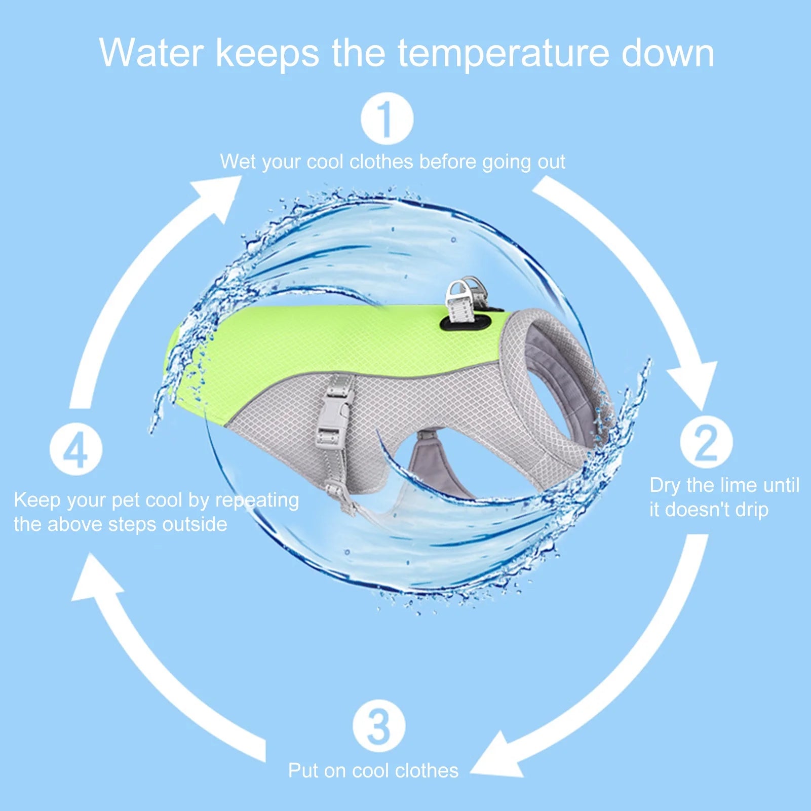 Keep your dog comfortable and cool during hot days with this breathable mesh cooling vest. Designed for all sizes—from small to large dogs—it features adjustable straps for a perfect fit and a reflective strip for added safety during evening walks. Lightweight and easy to wear, this vest helps regulate your pet’s temperature, making summer outings more enjoyable. Protect your furry friend with this practical and stylish cooling jacket.